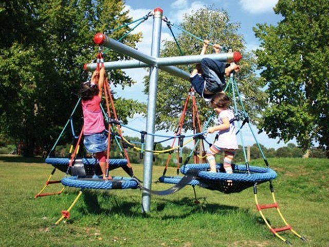 Mini cataratoare cu tema “cuiburi in arbore”, avand ca baza un stalp metalic, cu patru extensii de care sunt suspendate patru leagane cuib si mai multe tipuri de cataratori cu niveluri de dificultate diferite. Echipament produs în Germania.