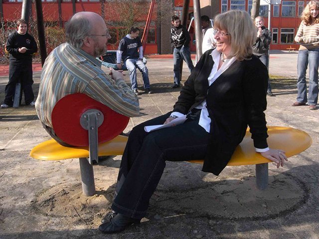 | Descriere: | Banca de comunicare de forma curbata, sprijinita pe doi stalpi metalici, avand doua locuri, unul cu spatar si unul fara, unite intre ele, recomandata pentru locuri publice si spatii de relaxare. Echipament produs în Germania. | ||||||||||||||||||