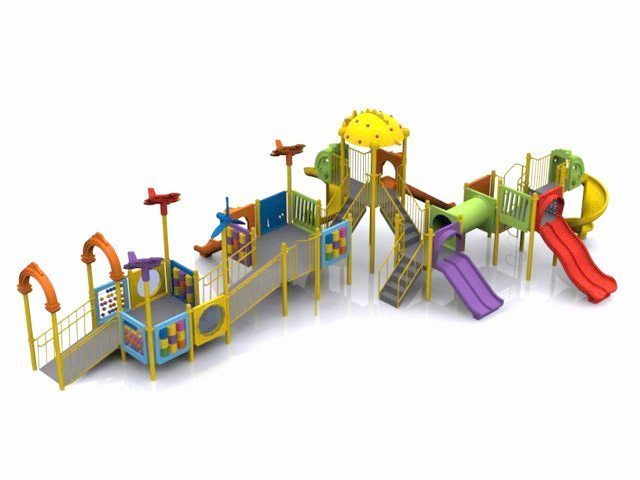 | Descriere: | Ansamblu de joacă de dimensiuni mari, cu șase turnuri de observare dintre care unul acoperit, cu șase tobogane diferite, două clasice, două spiralate și două duble, cu tunel târâtor și jocuri tematice, cu rampă și scară de acces, decorat cu animaluțe și avioane. | ||||||||||||||||||||