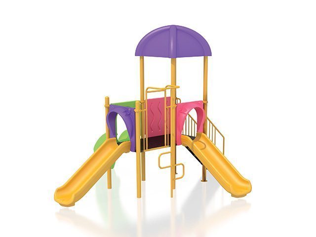 | Descriere: | Ansamblu de joaca cu doua turnuri de forma patrata, unul cu acoperis, cu doua tobogane, clasic si curbat, cataratoare metalica verticala si scara de acces. | |||||||||||||||||||