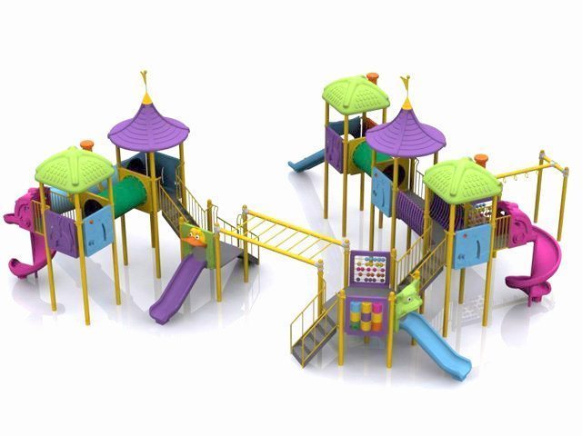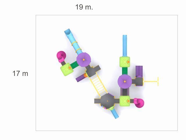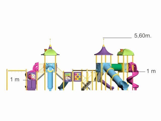 | Descriere: | Ansamblu de joacă cu opt turnuri de formă pătrată, cinci cu acoperiș, care comunică între ele prin poduri fixe, scări și tuneluri târâtoare, cu șapte tobogane de forme și mărimi diferite, cățărători metalice de diferite modele, jocuri tematice și scară de acces, decorat cu animale. | ||||||||||||||||||||