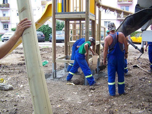 | Descrierea lucrării: | Un adevărat complex de joacă între blocuri este şi cel din Al. Streiu, Sibiu, care se remarcă prin multitudinea de hinte şi balansoare, dar şi prin atractivele carusele sau "turnuri" viu colorate. Copii pot să-şi etaleze diferitele aptitudini, să-şi dezvolte personalitatea comunicând cu cei de vârsta lor, sau să participe la jocuri educative pe echipe sau individual. Ca orice loc de joacă amenajat de Loftrek, şi acesta figurează deja pe lista preferinţelor celor mici. Montajul tuturor acestor echipamente s-a realizat într-o singură zi. Ancorarea s-a făcut prin turnarea unor fundaţii de beton. În funcţie de echipament, gropile au avut dimensiunile cuprinse între de 0.50m x 0.50m x 0.50m în cazul jucăriilor pe arc şi 1.20m x 1.00m x 1.00m în cazul caruselului Cuib. | |