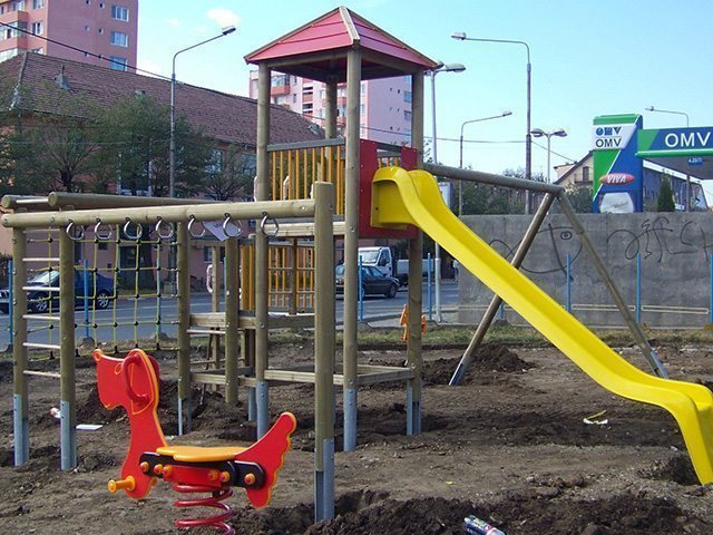| Descrierea lucrării: | Perfect integrat în arhitectura Sibiului, locul de joacă din strada General Vasile Milea a devenit o atracţie a zonei datorită numeroaselor leagăne şi balansoare, carusele şi căţărători, deosebit de apreciate în rândul copiilor. Aceştia se pot căţăra imitându-l pe Spiderman, pot să urce în turn şi sş salveze prinţese imaginare, se pot da în carusel asemeni lui Peter Pan, sau pot călări ponei ca şi voinicii din poveşti, totul într-un cadru liniştit şi viu colorat, plin de veselia specifică copilăriei. Montajul tuturor acestor echipamente s-a realizat într-o singura zi. Ancorarea s-a făcut prin turnarea unor fundaţii de beton. În funcţie de echipament, gropile au avut dimensiunile cuprinse între 0.50m x 0.50m x 0.50m în cazul jucăriilor pe arc şi 0.40m x 0.40m x 0.80m pentru celalalte echipamente. | |