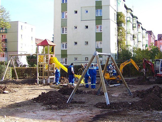 | Descrierea lucrării: | La intersecţia străzii Mirăslău cu Alexandru Buia, Sibiu, copii sunt încântaţi să-şi petreacă timpul liber în mod relaxant folosind echipamentele de joacă Loftrek, concepute special pentru nevoile lor. Diversitatea şi formele le situează în topul preferinţelor celor mici, fiind apreciate datorită domeniilor diverse pe care le reprezintă. Astfel cei mici pot desfaşura activităţi de căţărare, alunecare, balansare, rotire sau comunicare, contribuind eficient la dezvoltarea fizică şi educaţională. Montajul tuturor acestor echipamente s-a realizat într-o singura zi. Ancorarea s-a făcut prin turnarea unor fundaţii de beton. În funcţie de echipament, gropile au avut dimensiunile cuprinse între 0.50m x 0.50m x 0.50m în cazul jucăriilor pe arc şi 0.40m x 0.40m x 0.80m pentru celalalte echipamente. | |
